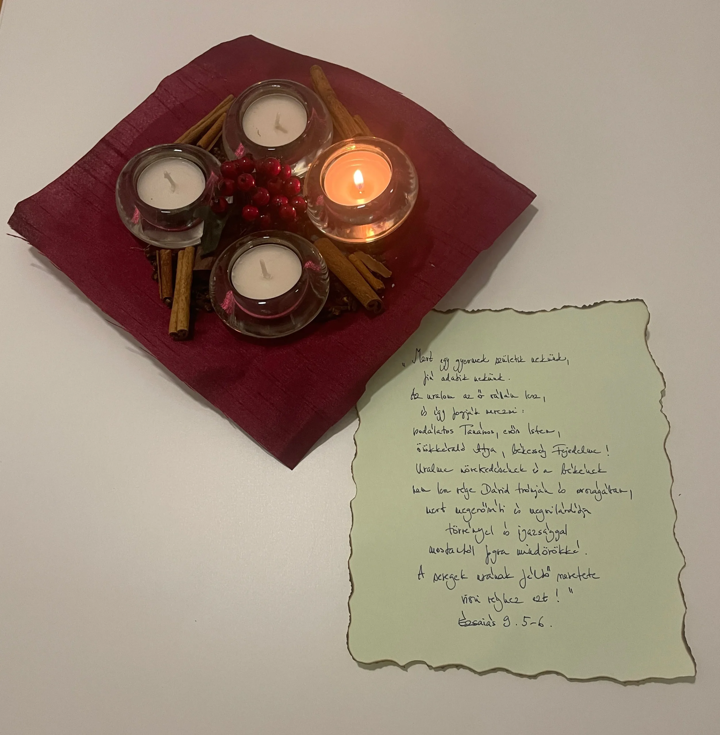 “Mert egy gyermek születik nekünk,fiú adatik nekünk.Az uralom az ő vállán lesz és így fogják nevezni:Csodálatos Tanácsos, Erős Isten,Örökkévaló Atya,Békesség Fejedelme!Uralma