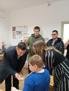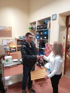 A Berettyóújfalui SZC Eötvös József Szakképző Iskola igazgatója, Nagy Zoltán két diákjuk kíséretében látogatott meg bennünket, és hozta intézménye jókívánságait, ajándékait, melyeket a tanulók készítettek.
