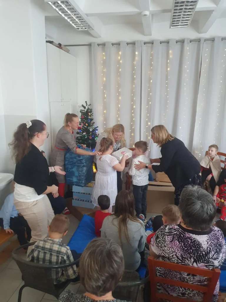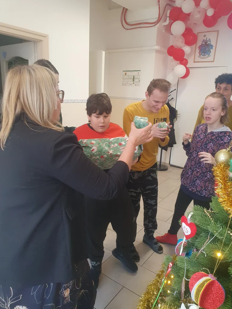 Az ünnepséget követően a feldíszített fa alatt került sor az ajándékok kiosztására, ami hatalmas örömet szerzett a gyerekeknek. Külön köszönet illeti a Kiskunhalasi Semmelweis Kórház dolgozóit, akik nagylelkű felajánlásukkal, sok színes ajándékkal lepték meg gyermekeinket, és hozzájárultak ahhoz, hogy ez a nap igazán emlékezetes legyen mindenki számára.
