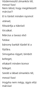 Érkezésünk után meghallgattuk az Éltes Mátyás EGYMI tanulóinak szavalatait, majd a gyerekek a felnőttek közreműködésével elmondták Szalai Borbála Március című versét: