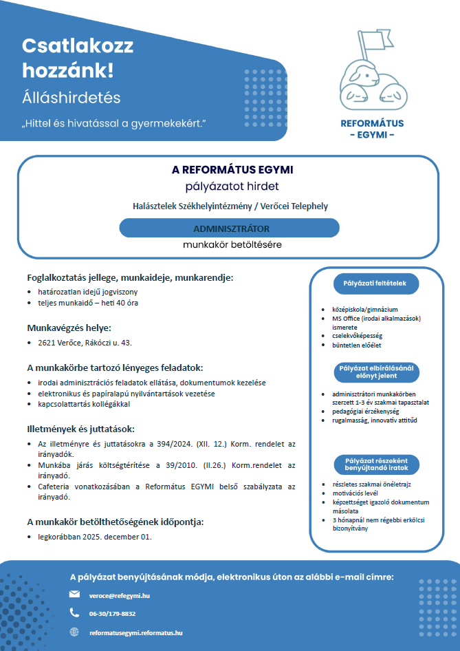 Adminisztrátori álláshirdetés Verőce