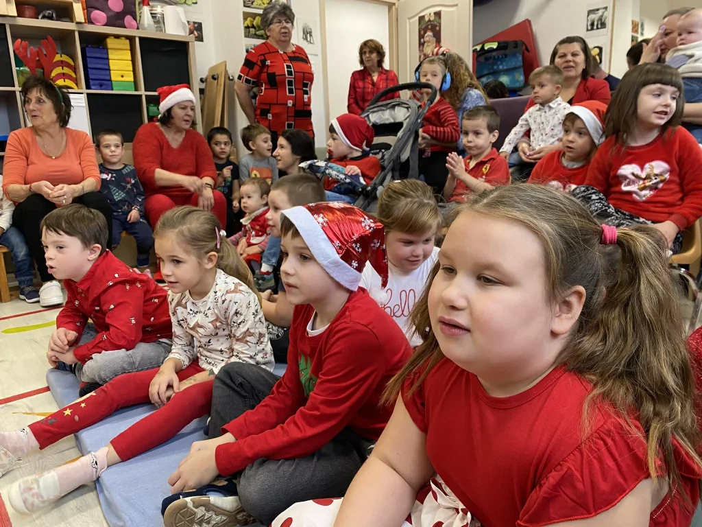Rénszarvasok húzta, csengős szánján idén is ellátogatott intézményünkbe segítőivel, a Mikulás! A készülődés hetei izgalommal és szorgalmas gyakorlással teltek, hogy a gyermekek méltóképpen fogadhassák a vendégeket. A nagy találkozásra közös zenéléssel, énekkel, mondókákkal készültek. A sok-sok várakozással teli pillanat után a varázslat minden gyermek szemébe csillogást, arcára örömöt rajzolt, az apró kezek pedig kíváncsian bontották ki az ajándékokat. A Mikulás kedves szavai és a csomagok tartalma bearanyozták minden gyermek napját.