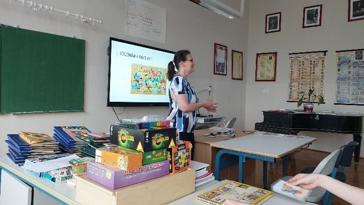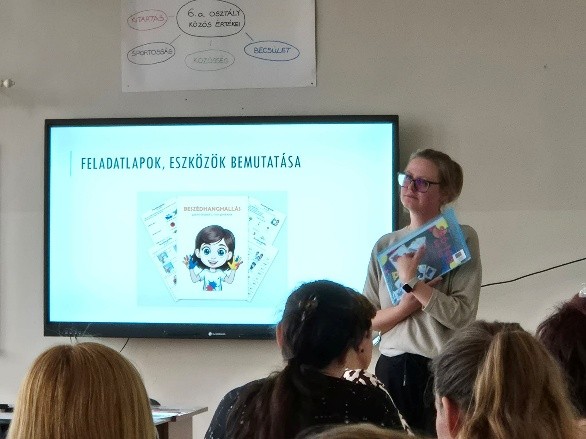 Második programunknak az Orosházi Református Két Tanítási Nyelvű Általános Iskola adott otthont. Az eseményen pedagógusok és szülők egyaránt részt vettek, ahol a beszédészlelés, beszédértés fejlesztési lehetőségeiről tartott logopédus kollégánk előadást. Gyakorlati példákon keresztül ismerhettek meg a résztvevők hatékony, a mindennapokban jól alkalmazható fejlesztő feladatokat, eszközöket, módszereket. A délután második részében „JÁTSZVA TANULUNK” címmel eszközbemutatót tartott fejlesztőpedagógusunk, ahol az érdeklődők kipróbálhatták a foglalkozásokon is használt fejlesztő eszközöket. A pedagógusok a tanórába történő integráláshoz, a szülők pedig gyermekük otthoni támogatásához kaptak ötleteket.