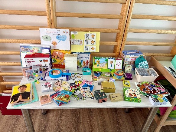 Programunk ideje alatt az autizmus specifikus fejlesztésben használható eszközök, játékok, kiadványok, valamint kollégáink saját készítésű fejlesztő eszközeinek, játékainak bemutatójára is sor került.