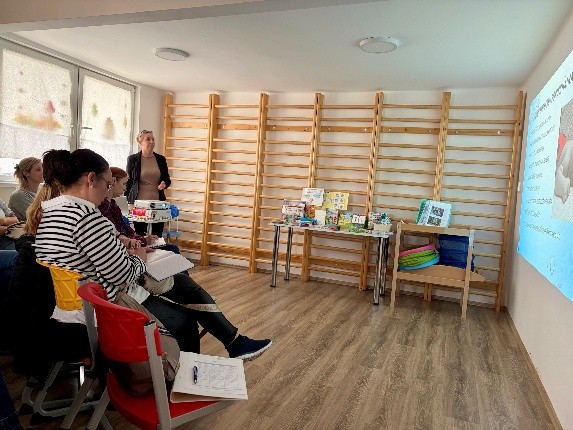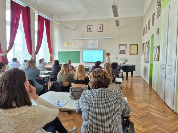 2026.04.13-án Tagintézményünk 3 helyszínen tartott szakmai délutánt ezen a napon. Makón „JÓ GYAKORLATAINK A SAJÁTOS NEVELÉSI IGÉNYŰ GYERMEKEK MEGSEGÍTÉSÉBEN” téma köré szerveztük előadásainkat. Programunk első felében a korai fejlesztés módszereiről, lehetőségeiről, valamint az autizmus specifikus terápia eszközeiről és az autisztikus kiégésről volt szó. A kötetlen beszélgetésre, szakmai kapcsolódásra lehetőséget nyújtó szünet után a Dyscalculine alkalmazási lehetőségeiről, majd zárásképpen a beszédfejlődés, nyelvi késés témájáról tartottak bemutatót kollégáink.