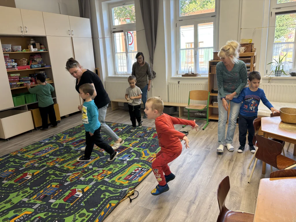 A gyerekek közös mesenézése után 4 próbát kellett kiállniuk: a forgószél által szétrombolt csoportszoba összepakolását, a kincskeresést, a királylány aranylabdáinak kihalászását és a királylány megmentését a mocsárból.